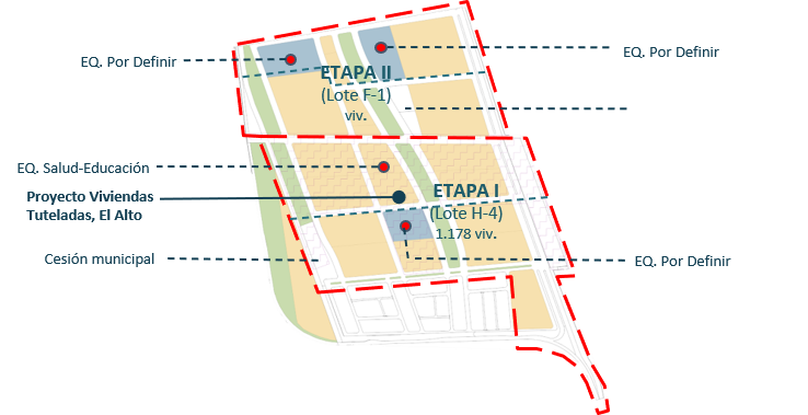Etapa 1: 2 Loteos con construcción simultánea. Adheridos a excepción de condominios, para hacer reservas de terrenos. Edificación en Altura , adjudicado mediante concurso oferta.