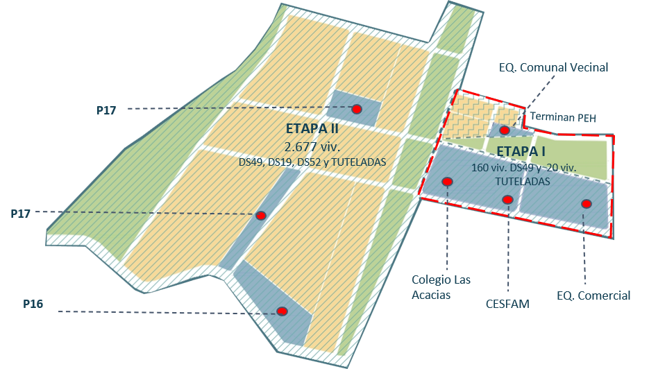 Colegio municipal y gestiones para equipamiento comercial en etapa 1 y Teletón en etapa 2.
